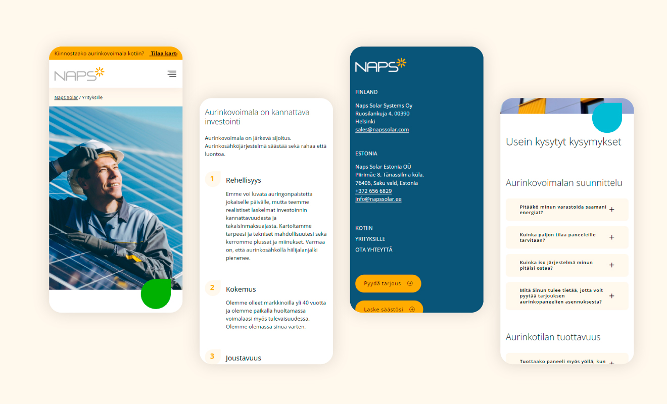 Projektin tavoitteena oli suunnitella ja toteuttaa selkeä ja moderni uusi WordPress-verkkosivusto. Tärkeä osa projektia oli kohderyhmien määrittely ja ostopolkujen suunnittelu. Verkkosivuille toivottiin myös helppokäyttöistä ja visuaalista aurinkopaneelilaskuria.