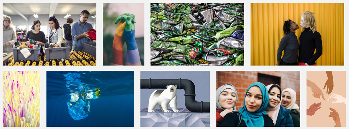 Kun brändi ottaa kantaa, sen on toimittava tarkoituksenmukaisesti ja ajettava yhtenäisyyttä ja yhteiskunnallista oikeudenmukaisuutta. Mitä se tarkoittaa visuaalisessa maailmassa? Ehkä suurimpia ja suositumpia keinoja tällä hetkellä ovat globaalin mittakaavan asiat ja ongelmat ja niiden vaikuttava esille tuominen.